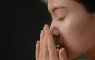 두 손바닥을 얼굴 가까이